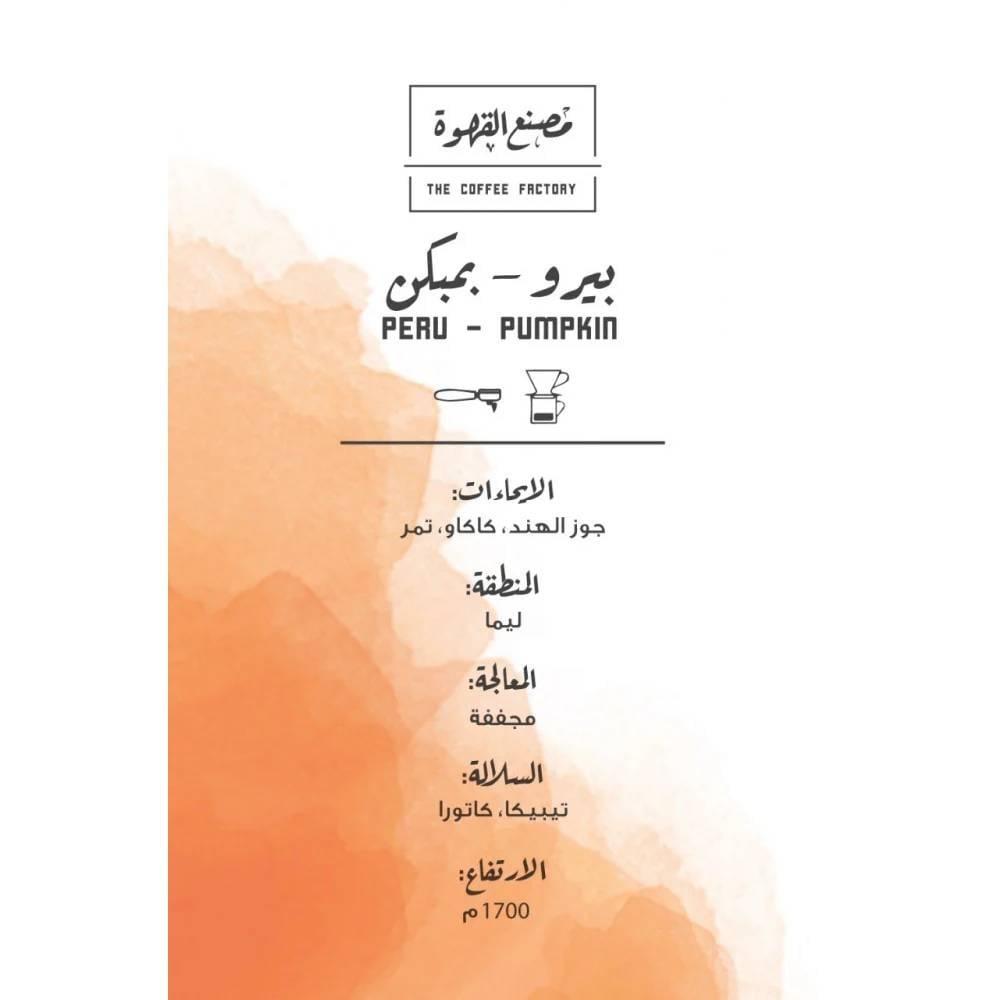 قهوة بمبكن محصول بيرو من متجر قهاوينا هي مزيج مثالي ومميز يجمع بين نكهه اليقطين الدافئه ولمست التوابل الخريفيه الغنيه. تتميز حبوب قهوه ممكن التي تم اختيارها بعناية من مزارع بيرو بتناغم رائع بين حلاوه اليقطين ونفحات جوز الهند وحلاوة التمر والكاكاو والذي يعطي مزيج رائع لعشاق القهوه. تعمل محمصة مصنع القهوة على إبراز جميع نكهات وخصائص حبوب القهوة الطبيعية بطريقة استثنائية يعشقها محبي القهوة.