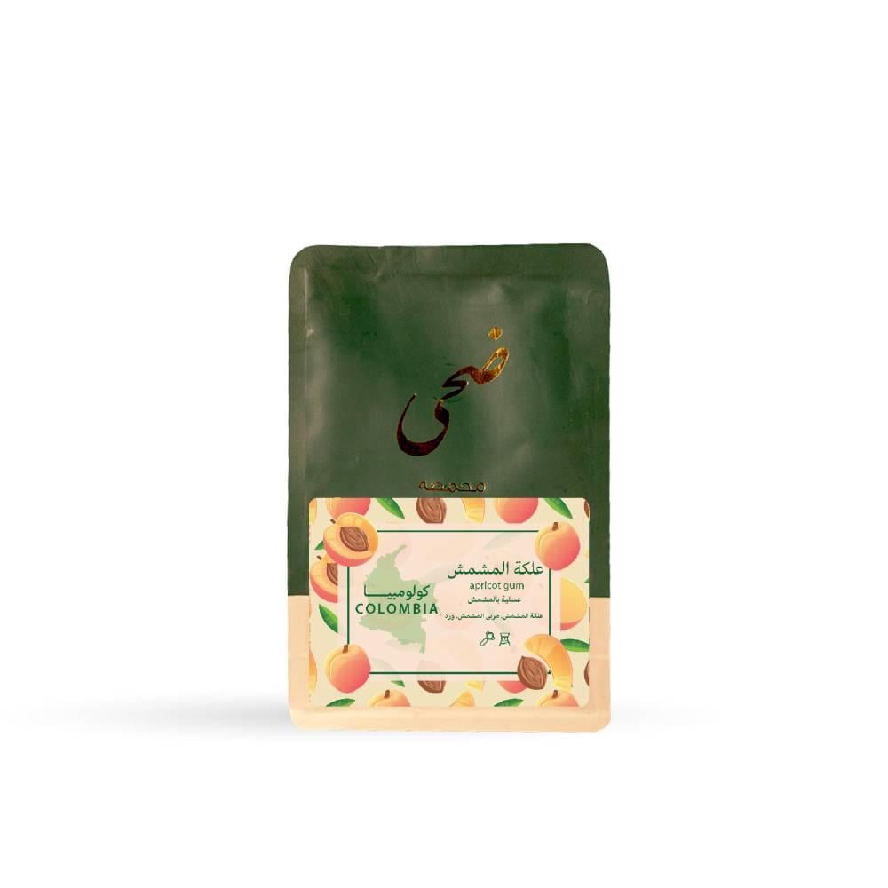 - من منطقة هويلا في كولومبيا، وعلى ارتفاع 1800متر، تنمو حبوب هذه القهوة في بيئة مناسبة، غنية بالأمطار والتربة البركانية الحمراء. معالجة تخمير بنكهة علكة المشمش تبرز نكهة المشمش والورد