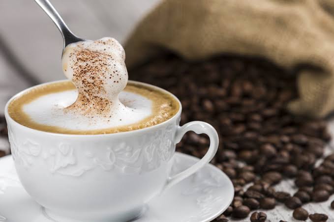 عبارة عن قهوة الاسبريسو ممزوجة بالحليب, وتُزيّن بالفوم (الرغوة) أو الكريمة. ويحتوي كل كوب من الكابتشينو على 300 سعر حراري تقريبًا.