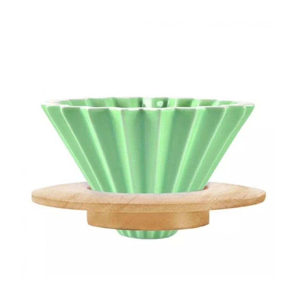 قمع تقطير سيراميك قاعدة خشبية 01-02 | V60 | اخضر