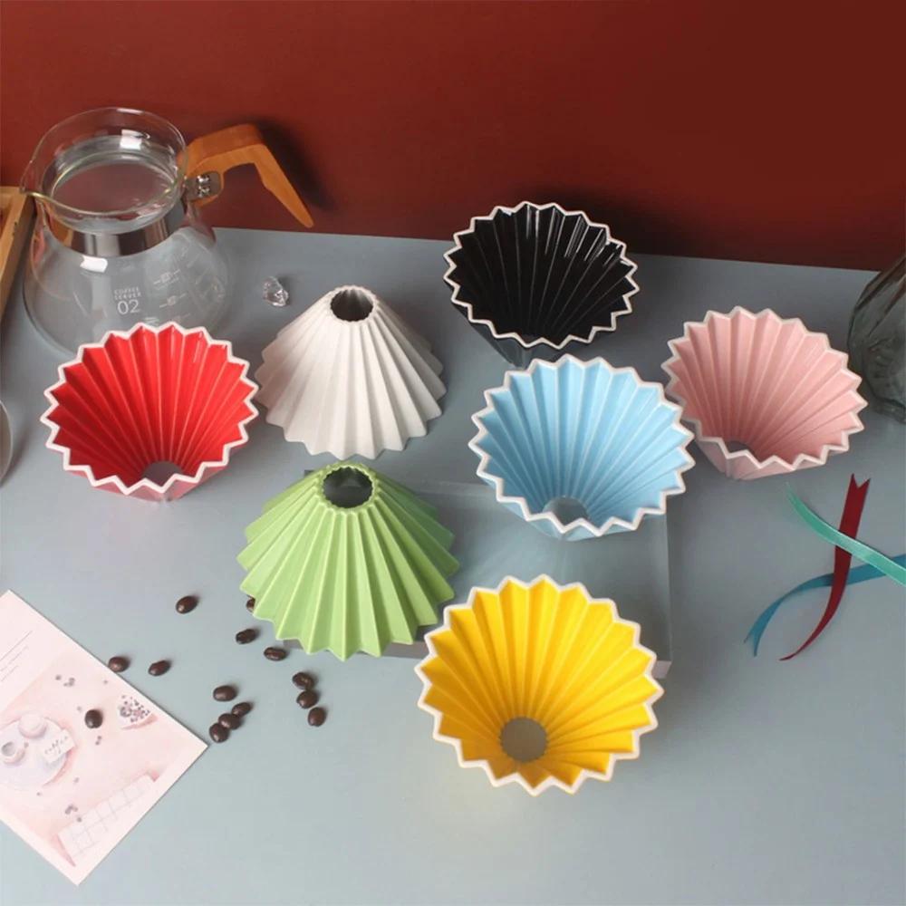 قمع تقطير سيراميك قاعدة خشبية 01-02 | V60 |وردي
