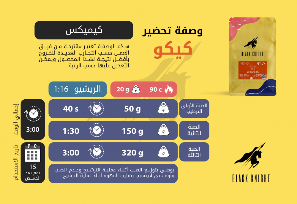 تمت معالجة قهوة كيكو الكينية من محمصة الفارس الاسود عن طريق المعالجة المجففة بأسلوب يتناسب مع مشروبات الاسبريسو والحليب وكافة مشروبات الفلتر والقهوة الباردة ، بفضل قومها الرائع والمناسب الناتج عن عملية المعالجة ، مما يجعلها تحتفظ بنكهتها لأطول فترة ممكن تصل إلى عام كامل.