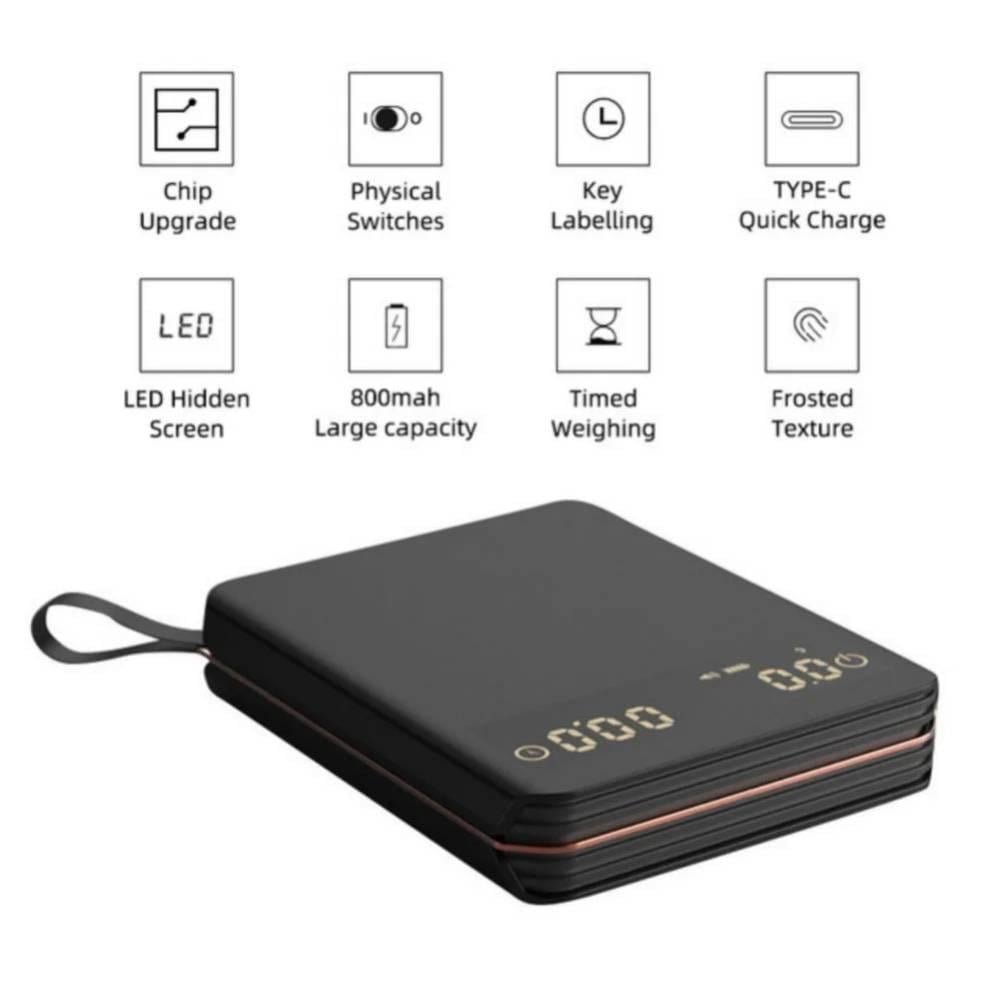 ميزان قهوة محمول ومتين مزود بمؤقت مناسب لمختلف انواع طرق تحضير القهوة